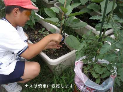 放課後,子どもたちがピーマンとナスを収穫してくれました。これから毎日収穫できるのでは??と喜んでいます。