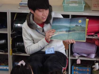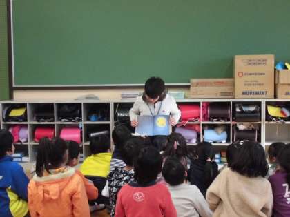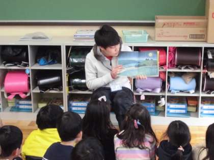 本の読聞かせをしてもらった本は,「しりたがりおつきさま」です。子どもたちは,「面白かった。」「また読んでほしい」等の感想を言っていました。