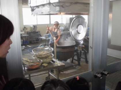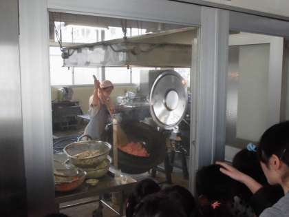 材料の多さに驚いたり,使っている器具の大きさに驚いたりしていました。