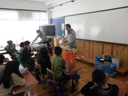 学活の時間に,「陶芸教室」が行われました。お皿等の作品作りをしていました。