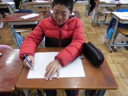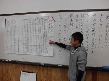 国語の時間に,「忘れられない言葉」を学習しています。今日は,「忘れられない言葉」を学習してモデル文を書いていました。