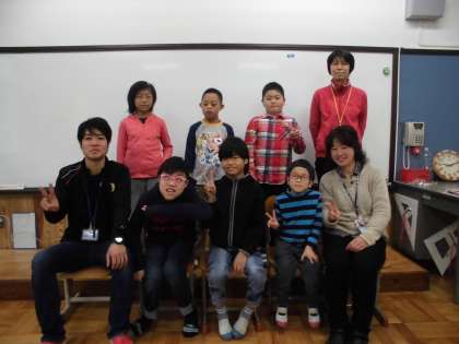 はっぴー学習に,出かける前の集合写真です。