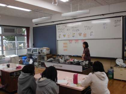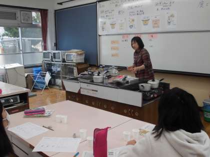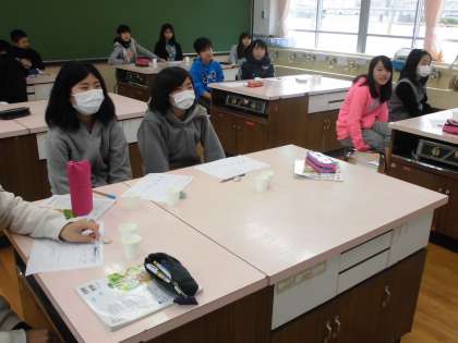 家庭科の時間に,「まかせてね今日の食事」を学習しています。今日は,いろいろな出しの特徴について学習していました。