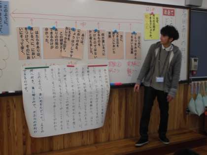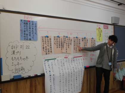 国語の時間に,「ありの行列」を学習しています。今日は,説明文にどんな内容が書かれているかを考えていました。