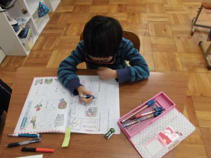 国語の時間に,漢字練習やコンピュータを使って漢字の意味などを調べていました。