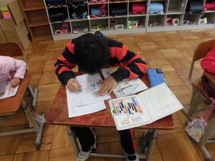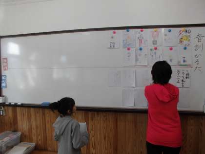 国語の時間に,「音訓かるた」を学習しています。今日は,音訓かるたを作っていました。
