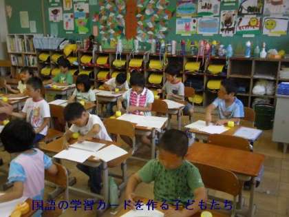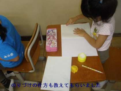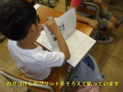 今日は,プリントと台紙にはりました。プリントの四隅をそろえてのりづけすることは,1年生には少し難しい作業ですが,みんながんばって取り組みました。うまくできたかな??