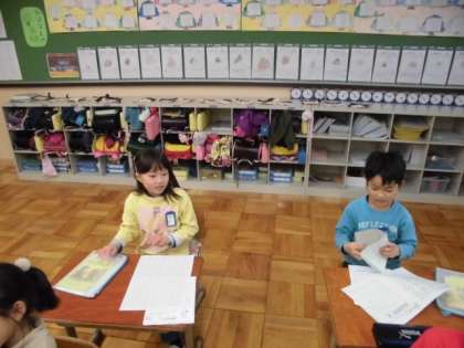 数の広場が終わってから,今日のプリントや宿題等を配布していました。
