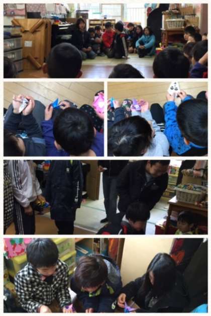 5年生が,作ったプレゼントを渡していました。
