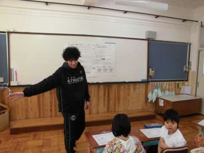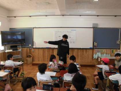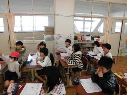 体育の時間に,「とび箱」を学習しています。今日は,とび箱の練習をする前に教室で学習の進め方等の確認をしていました。