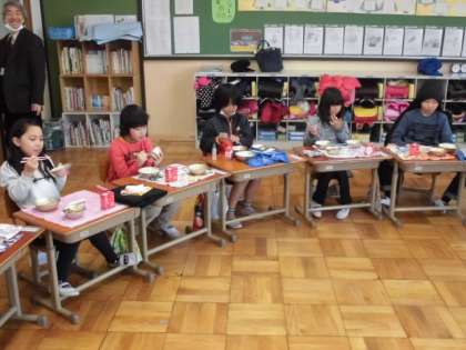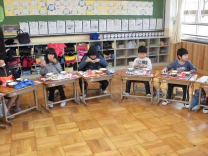 給食の準備が,出来ました。それでは,いただきます。