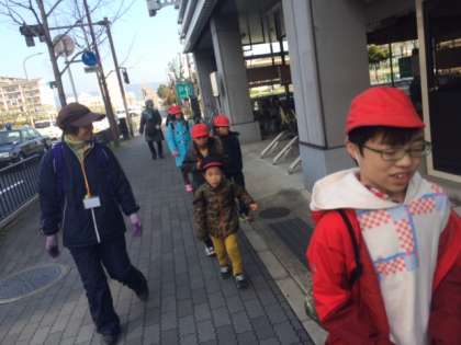今日は,支部合同育成学級お別れ会の日です。会場に向かって出発です。