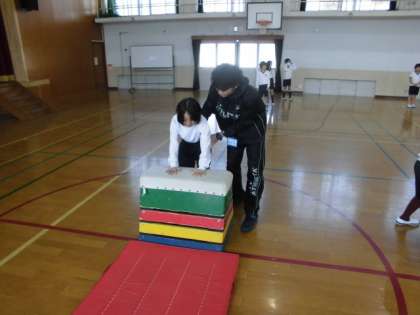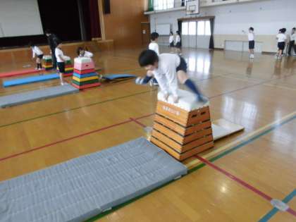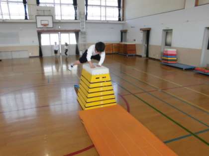 体育の時間に,「とび箱」を学習しています。今日は,子ども達自身がとべる高さに挑戦していました。