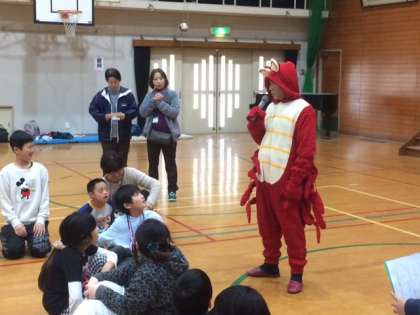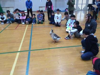 メダルが送られた後,にアヒルとザリガニ先生よりお祝いの言葉をいただきました。