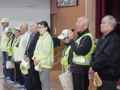 今日は,朝会の日です。朝会の初めに,毎日子ども達の登下校時の様子を見守っていただいている「醍醐西こども見守り隊」の皆様に感謝状の贈呈式が行われました。