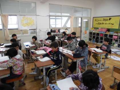 社会の時間に,昔をつたえるものについて調べていました。