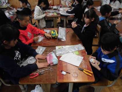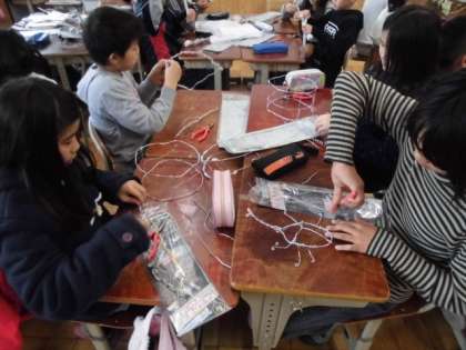 図画工作の時間に,「立ち上がれ!マイライン」を学習しています。今日は,作品を仕上げるために一生懸命に制作していました。
