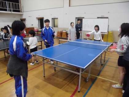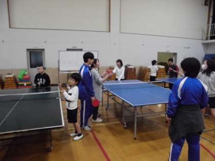 卓球部のお別れ試合に,卒業生も参加してくれました。