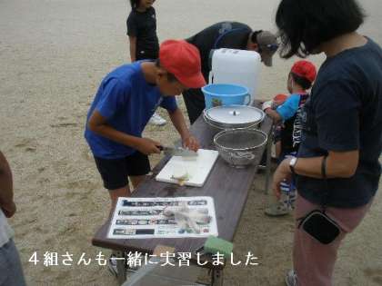 4組さんも今日は4年生といっしょに野外炊事の実習をしました。長期宿泊やみさきの家を経験している4組の6年生はさすが手慣れたものです。包丁さばきもうまく,4年生のお手本になっていました。