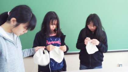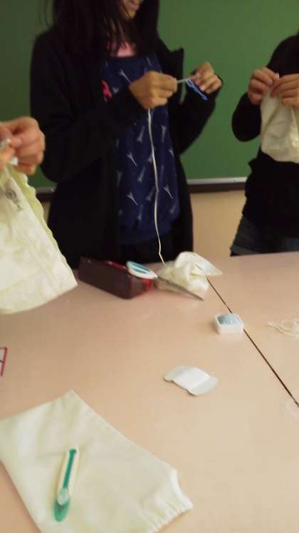 6年生が,1年生の給食エプロンのほころびをなおしたり,ゴムの入れかえをしてくれました。