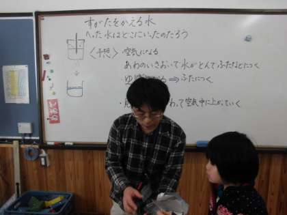 理科の時間に,「すがたをかえる水」を学習しています。今日は,実験をしていました。