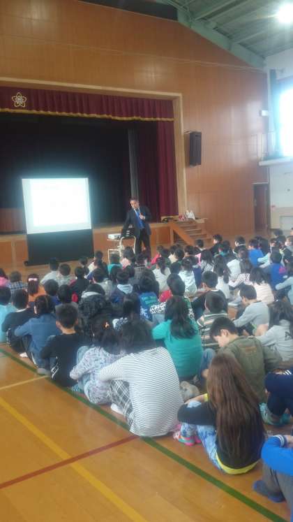 今年度,初めての朝会が行われました。校長先生より,規則正しい生活などについてお話がありました。