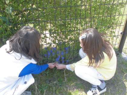 ビオトープで春見つけをしていました。たくさん春の植物を見つけられたようです。