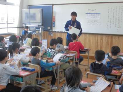 ドリルの使い方など宿題の説明を真剣に聞いていました。