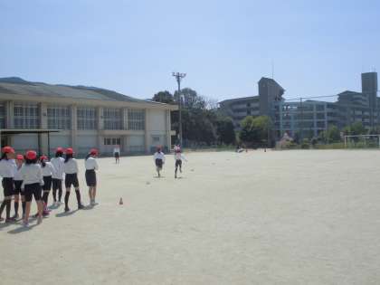 運動場では,さっそく6年生が50mのタイムを計測していました。5年生の時よりもタイムが大きく伸びた児童もたくさんいました。