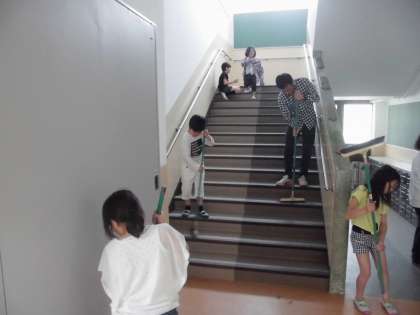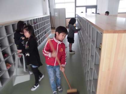 長寿化工事が終わり,きれいになった校舎を張り切って掃除しています。