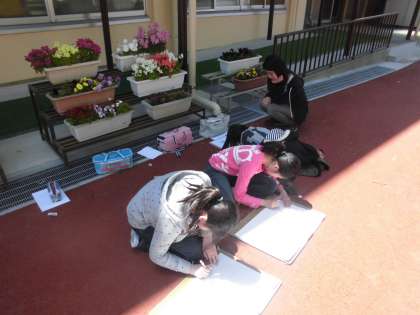 図画工作の時間に,校内の風景を描いていました。