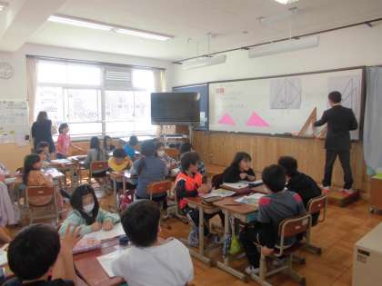 1組は算数で三角定規を使って角について調べました。2組は国語で,「白いぼうし」を学習し,女の子について気付いたこと,考えたことを話し合いました。