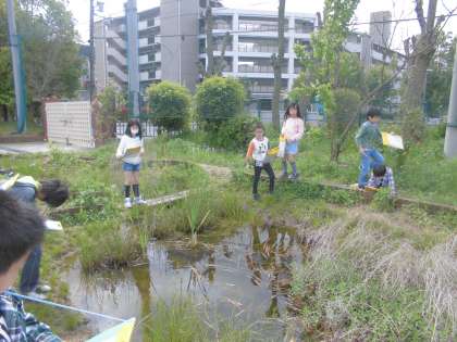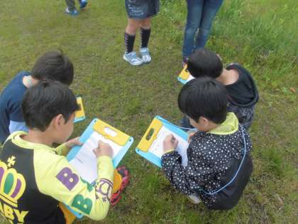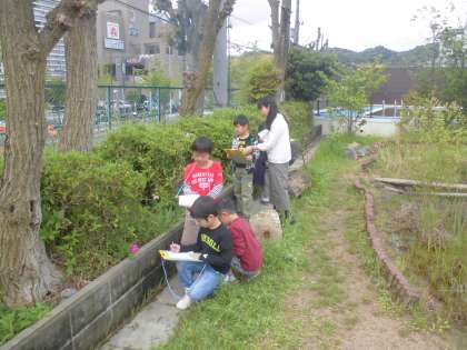ビオトープにいる生き物を観察しました。色や形など観察して分かったことをカードにしっかり記録しました。知っている生き物でも,じっくり観察することで新たな発見がたくさんあります。