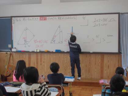 角について調べて分かったことを前に出て発表していました。4年生になり,説明の仕方もどんどん上手になっています。