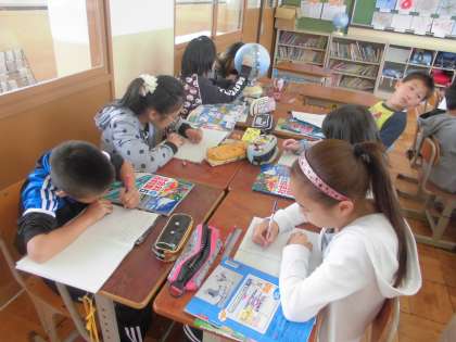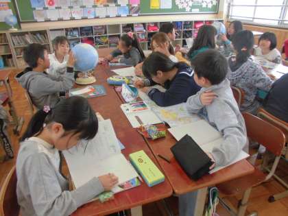 世界の大陸や国について地球儀や地図帳を使って調べ学習を行いました。また担任の先生から国旗についての話を聞きました。