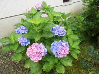 朝,中山団地内を歩いていると,紫陽花(アジサイ)が色とりどりに咲いていました。雨に濡れて一段と鮮やかでとてもきれいでした。思わず写真におさめました。