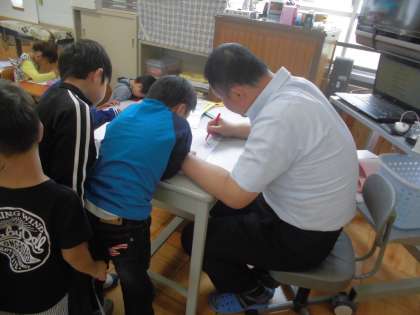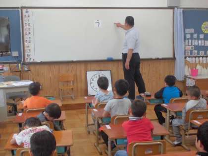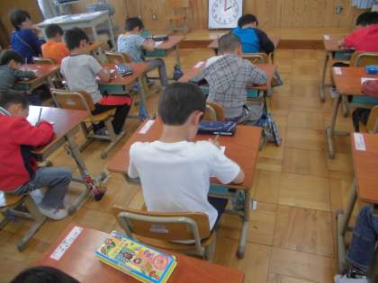 今日はひらがなの「う」の書き方を学習しました。先生と書き順や形をしっかり確認してから,プリントで練習をしました。