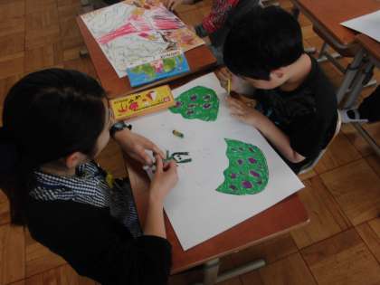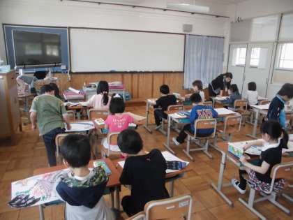 図画工作の時間に,「ひみつのたまご」を学習しています。今日は,子ども達の思い思いのひつみのたまごを描いていました。