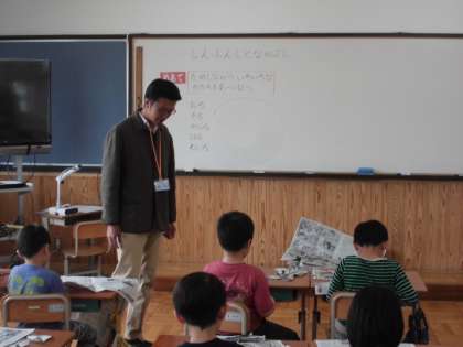 図画工作の時間に,「しんぶんしとなかよし」を学習しています。今日は,新聞を折ったり切ったりするなどして色々な形を確かめていました。