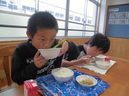 栄養教諭の内田先生に「食」に関する学習をしていただきました。また学習後は,新しくなったランチルームで給食をいただきました。