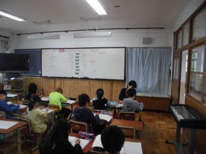 算数の時間に,「わり算」を学習しています。今日は,余りのあるわり算の仕方を学習していました。