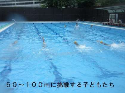 100メートル以上楽に泳ぐ子や5メートルがやっとの子もいて,少し差があるようですが,どの子も自分の持てる力をいっぱい発揮して泳いでいました。