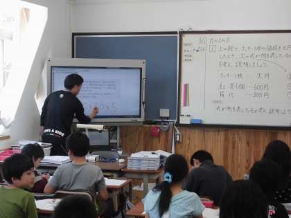 算数の時間に,「文字と式」を学習しています。今日は,式が何を表しているかを考えていました。