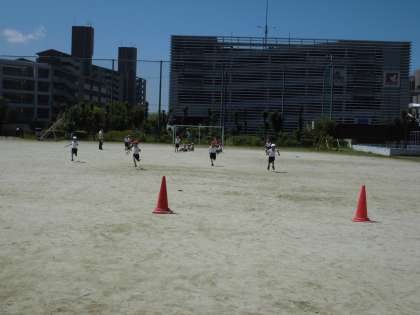 体育の時間に,「リレー」の学習をしています。今日は,走り方の工夫しながらリレーをしていました。