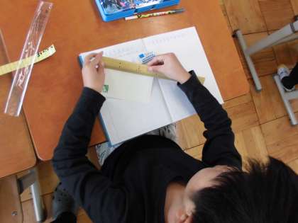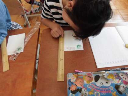 30cmものさしを使って,はがきの長さをはかっています!