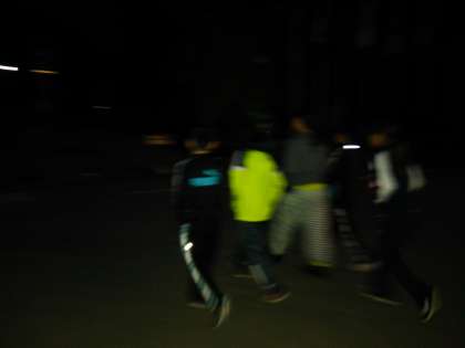 ナイトハイクのスタートです。班のみんなで協力して,「せせらぎコース」を歩いていきます。真っ暗なところでも,仲間と一緒なら恐くない!!