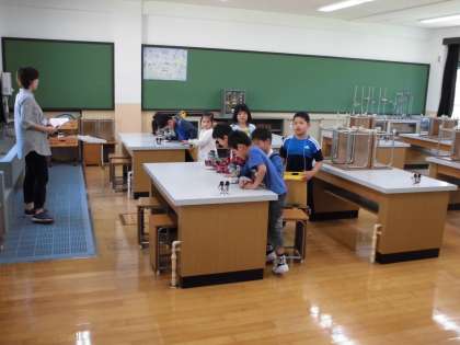 「ここは理科室でこんなお勉強をするよ。」「広い多目的室はここだよ。」「職員室の入り方は…」1年生に優しく教えてあげました。