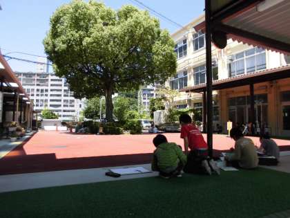 晴天の中庭で絵の続きです。