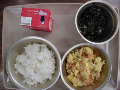今日の給食の献立は,「麦ご飯」「あげたまに」「牛乳」「小松菜とひじきの炒めもの」です。