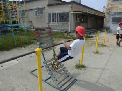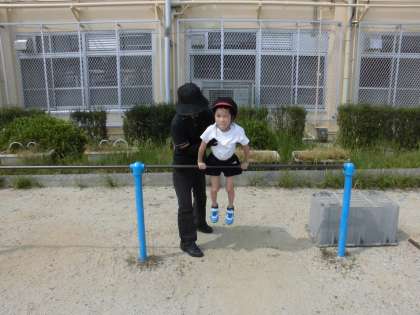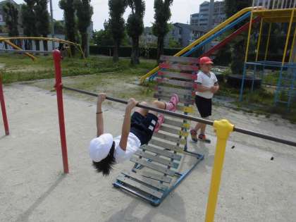 体育の時間に,「鉄棒」を学習しています。今日は,逆上がりの練習をしていました。